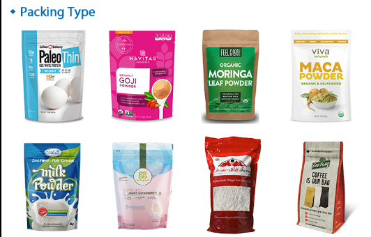 കാര്യക്ഷമതയുടെയും സ്ഥിരതയുടെയും 8 വർക്കിംഗ് സ്റ്റേഷനുകൾ ഉൾക്കൊള്ളുന്ന ഈ പ്രീ-മേഡ് പൗച്ച് ഫിൽ ആൻഡ് സീൽ മെഷീൻ, സ്റ്റാൻഡ്-അപ്പ് ബാഗ്, സിപ്പർ ബാഗ്, സ്പൗട്ട് ബാഗ്, വിവിധ മുൻകൂട്ടി തയ്യാറാക്കിയ പൗച്ചുകൾ എന്നിവയുടെ പാക്കേജിന് ഊന്നൽ നൽകുന്നു. യുമായി സഹകരിച്ചു ആഗർ സ്ക്രൂ ഓട്ടോമാറ്റിക് ലിഫ്റ്റിംഗ് കൺവെയറുകളും, ഇത് പ്രയോഗിക്കുന്നു പൊടി മെറ്റീരിയൽ.