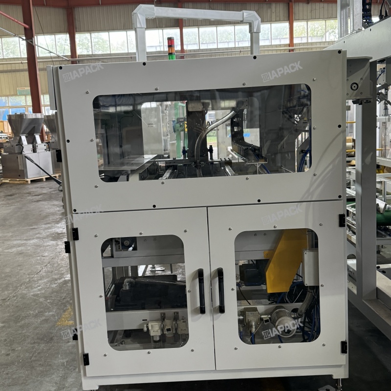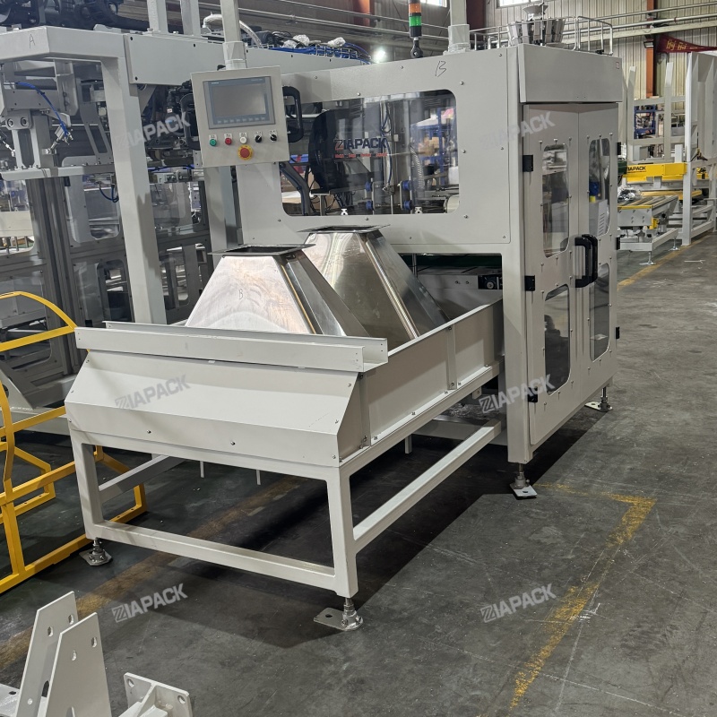 ഈ യൂണിറ്റിൽ ഒരു ബാഗ് സംഭരണ ബിൻ, ബാഗ് എടുക്കുന്നതിനും തരംതിരിക്കുന്നതിനും ഉപകരണം, ബാഗ് ലോഡുചെയ്യുന്ന റോബോട്ട്, ബാഗ് ക്ലാമ്പിംഗ്, അൺലോഡിംഗ് ഉപകരണം, ബാഗ് പുഷിംഗ് ഉപകരണം, ബാഗ് മൗത്ത് ഗൈഡ് ഉപകരണം, വാക്വം സിസ്റ്റം, നിയന്ത്രണ സംവിധാനം എന്നിവ ഉൾപ്പെടുന്നു.
