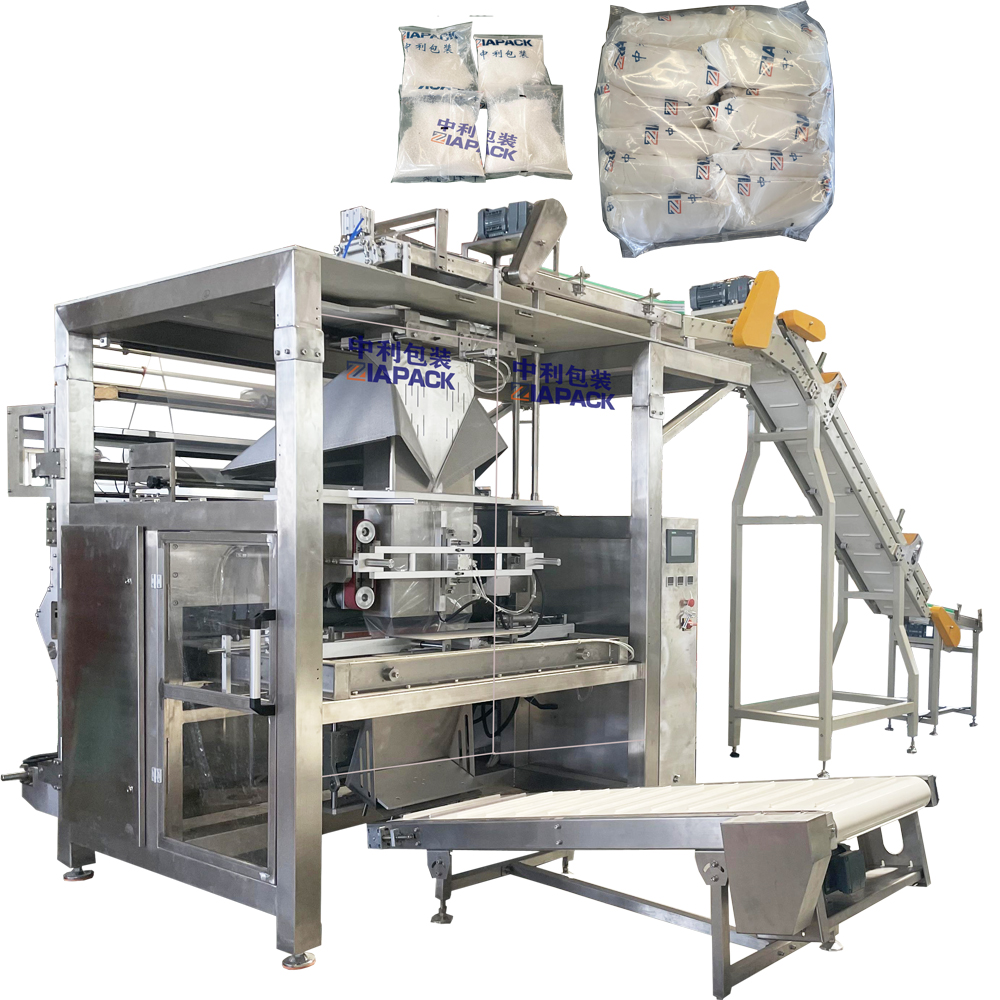 ഈ യന്ത്രം ചെറിയ ബാഗ് വലിയ ബാഗിലേക്ക് പാക്ക് ചെയ്യാൻ അനുയോജ്യമാണ് .യന്ത്രത്തിന് ബാഗ് ഓട്ടോമാറ്റിക്കായി നിർമ്മിക്കാനും ചെറിയ ബാഗിൽ നിറയ്ക്കാനും തുടർന്ന് വലിയ ബാഗ് സീൽ ചെയ്യാനും കഴിയും. താഴെ പറയുന്ന യൂണിറ്റുകൾ ഉൾപ്പെടെ ഈ യന്ത്രം: